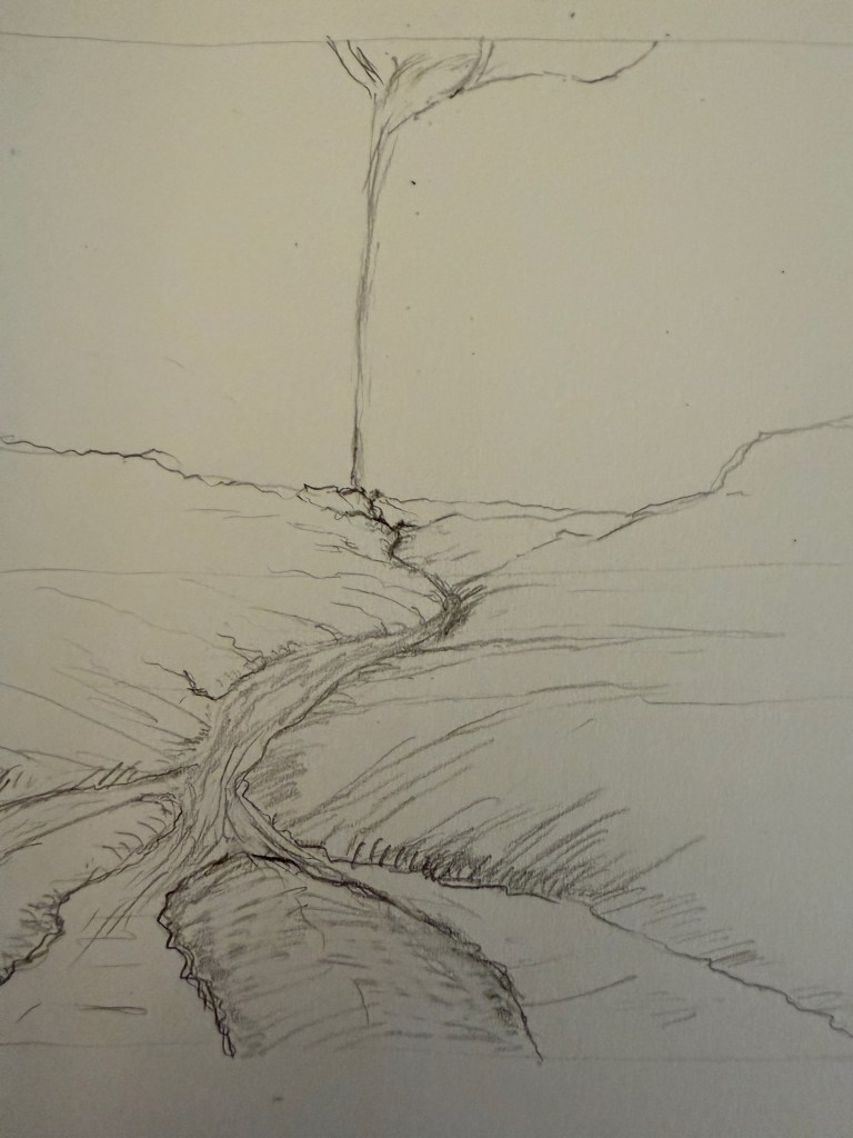 (A sketch toward the illustration for Psalm 75 – this one took several attempts and iterations – I’ll try to show the journey along the way. There were even earlier attempts than this – it was a tough one!)