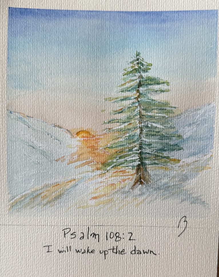 I decided to try an entirely different setting for the dawn. I ended up liking this, of all the dawn illustrations, for this Psalm. A glorious day in the snowy hills.